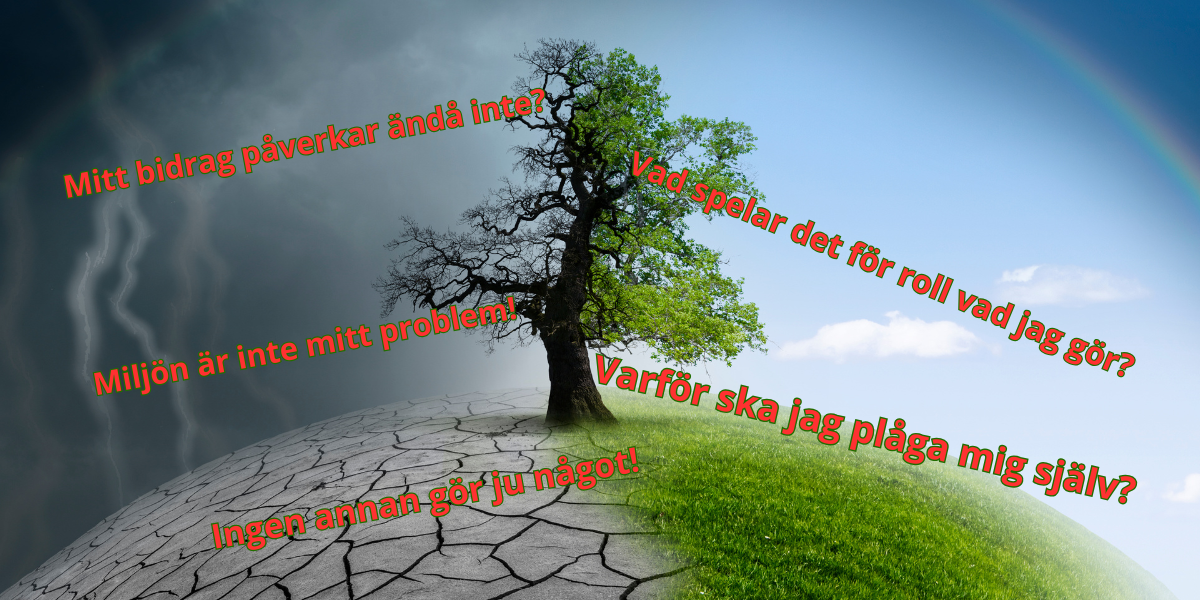 Och du, slänger du tomma ölburkar i skogen? Bränner du spillolja och/eller mjölkförpackningar i kaminen? Visst håller du oftast 30 km/h över rådande hastighetsgräns? Delar vi in världen i områden med 10 miljoner människor och alla ropar "våra utsläpp spelar ingen roll", kommer vi aldrig att kunna lösa klimatproblemen.2050 beräknas det finnas 1 miljard klimatflyktingar. Jag utvecklar resonemanget att vi i Sverige är så små att 0,1% av de globala utsläppen som landet står för, inte har någon inverkan på klimatförändringarna.